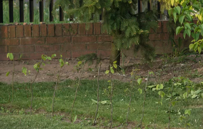 - Обрізка відразу після посадки. Незалежно від висоти саджанців грабову огорожу необхідно підрізати. Залежно від розгалуження саджанців обріжте їх на висоту 20-40 см над землею.