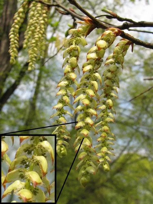 Квітки граба дводомні та однодомні, запилюються вітром. Чоловічі квітки зібрані у звисаючі суцвіття сережки циліндричної форми, завдовжки 3,5-5 см, зеленуваті, пилясто-жовті.