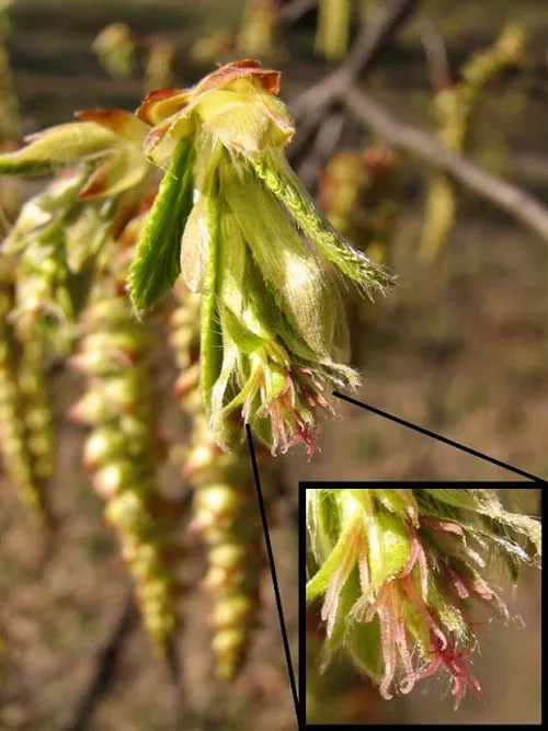 Жіночі квітки малопомітні. Період цвітіння граба: квітень-травень (до розвитку листя). Чоловічі квітки зазвичай з'являються на початку квітня. Жіночі квітки розпускаються на 2 тижні пізніше, незадовго до розвитку листя.