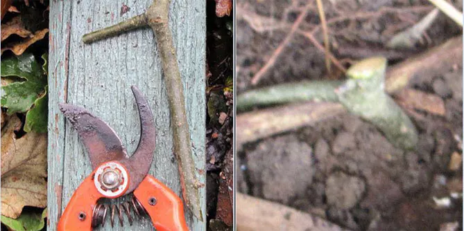 - Під час обрізки наріжте живці завдовжки 10-20 см з 3-4 бруньками. Оберіть для розмноження здорові пагони. Верхній зріз робіть під кутом над брунькою.