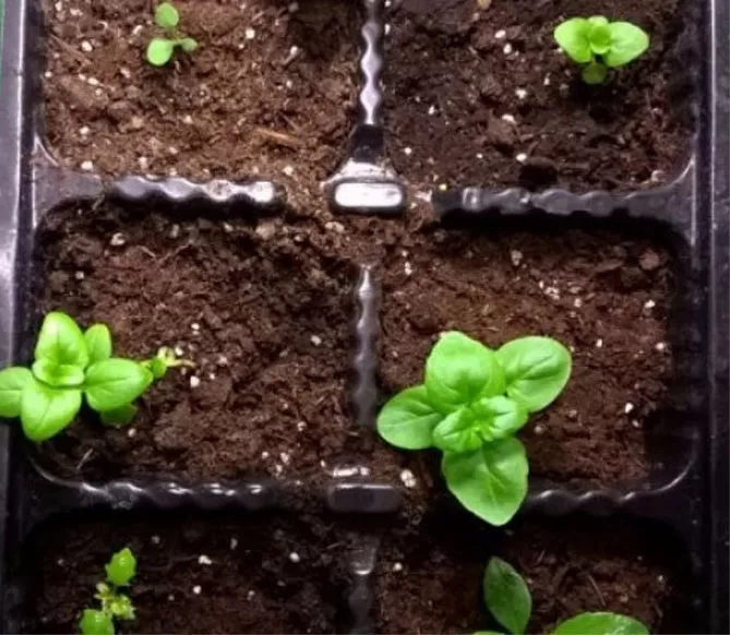 Молоді саджанці можна переносити в сад або в цільові контейнери, коли у них буде кілька справжніх листків (перші два листки називаються сім'ядолі, наступні – справжні).