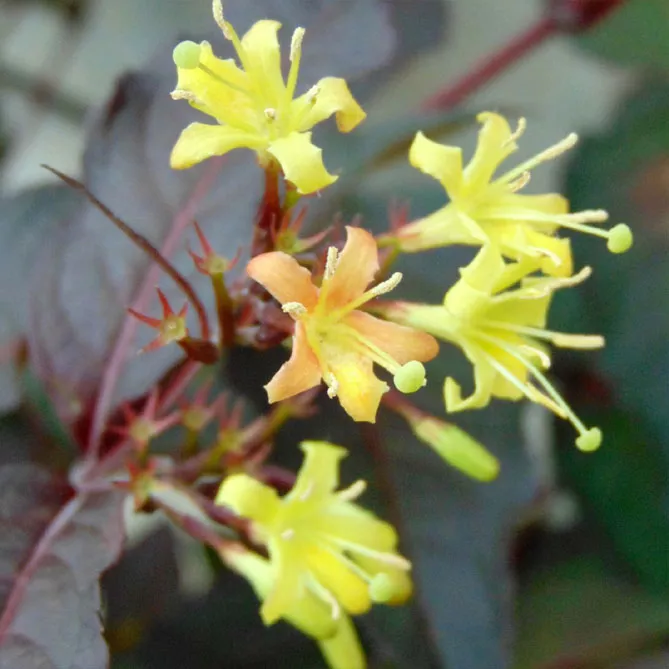 Восени кущ покривається гарним листям у жовтих, оранжевих та фіолетових тонах. Diervilla x splendens має чудові відтінки, починаючи з літа, коли рясні грона золотисто-жовтих квітів виділяються на тлі темно-зеленої рослинності, навіть у тіні набуваючи пурпурово-червоного відтінку. Листя D. splendens Diva цілий рік фіолетове, а восени стає пурпурово-червоним.