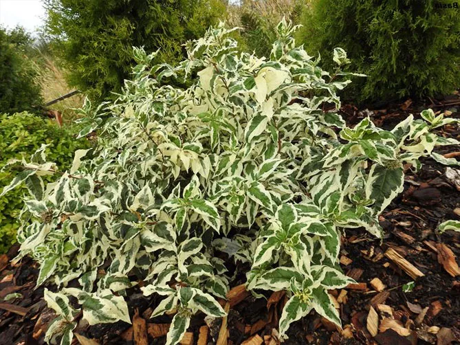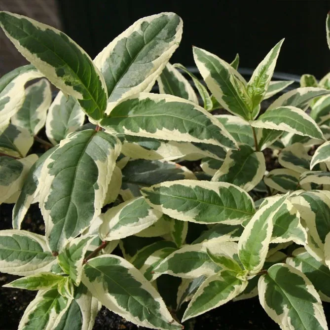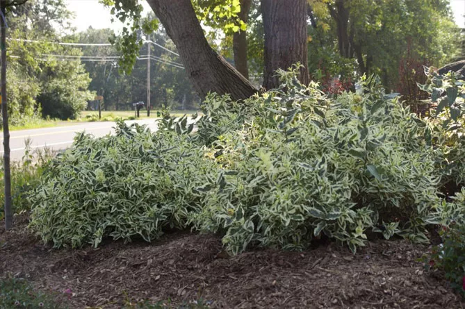 Дієрвілла сидячелиста «Кул Сплеш» (Cool Splash) досягає висоти 1,2 м. Період цвітіння: червень-липень. Компактний чагарник з зеленими строкатими листками з білою облямівкою, дуже витривалий, заповнить затінені ділянки саду.