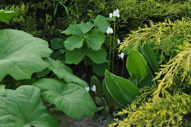 Оскільки листя рослини зникає на початку літа, щоб заповнити голу землю і зайняти місце після цвітіння, розгляньте можливість посадки між саджанцями, кількох невеликих літніх цибулинних квітів або інших багаторічників, які цінують вологі ґрунти і затінені місця.