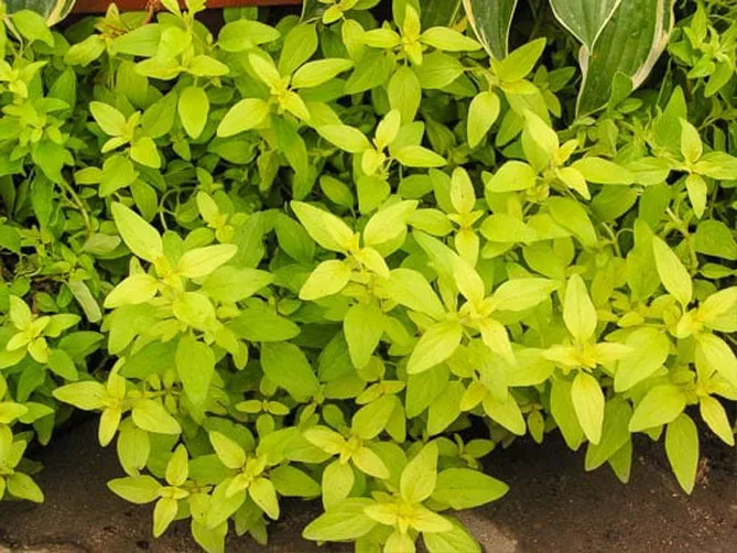 - «Ауреум» Aureum – низькорослий, кущистий, стелючий сорт орегано, висотою 20-50 см з бузково-рожевими квітками. Дуже декоративний і цінний завдяки жовто-зеленому листю з ніжним смаком. Щоб зберегти цей цікавий колір, рослину слід обрізати кілька разів на рік.