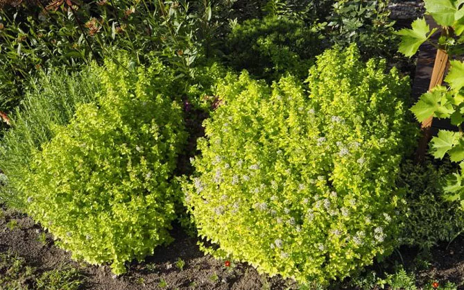 - «Ауреум криспум» Aureum Crispum – з жовто-зеленими, зморшкуватими листками, росте повільно, виростає до 15 см.