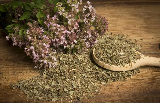 Орегано має дуже інтенсивний смак, з легким гіркуватим відтінком і нотками солодких спецій. За смак і аромат відповідають ефірні олії, що містяться в рослині, і феноли. Феноли мають антибактеріальну та протизапальну дію.