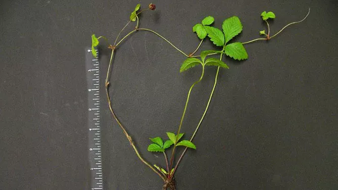 - Столони. Дюшенея утворює столони, які дозволяють їй швидко заселяти територію. Кожна материнська рослина утворює столони довжиною 30-100 см, які дають початок дочірнім рослинам (зі своєю кореневою системою).