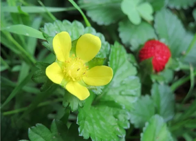 Типовий вид Duchesnea indica цвіте навесні та влітку (з квітня по вересень залежно від клімату).