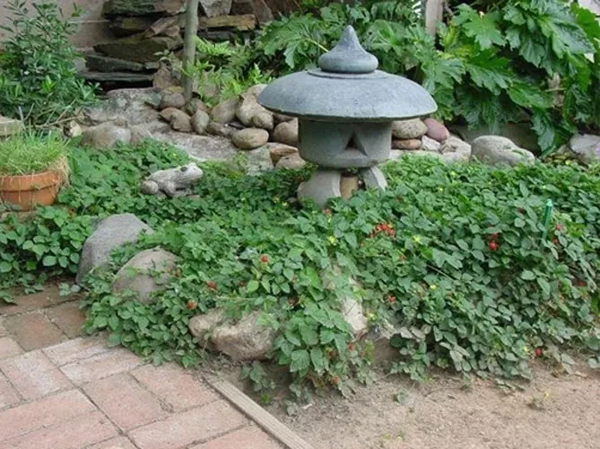 Можна створити з дюшенеї великий килим, а також доповнити його іншими рослинами з подібними вимогами до умов вирощування: