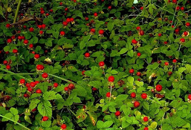 - Плоди. Квіти перетворюються в кінці літа на дрібні червоні плоди з білою м’якоттю, зовні апетитні. Вони мають кулясту форму, нагадують лісову суницю, але з сухою структурою і неприємним смаком.