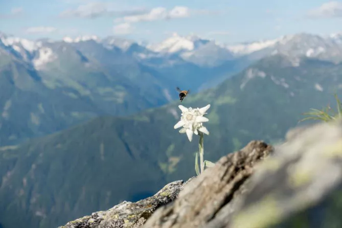 Едельвейс віддає перевагу високогірним вапняковим масивам (на висоті 1270-3000 метрів), також зустрічається на кам'янистих галявинах і, у виняткових випадках, на сінокосних луках. Його запилення на 80% забезпечується мухами, які живляться його нектаром.