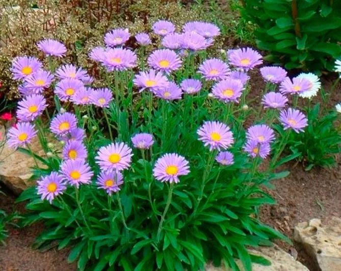 - Erigeron × hybridus – Садові гібриди еригерона.