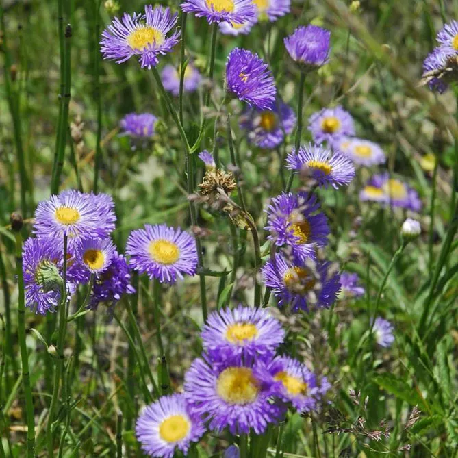 Еригерон красивий (Erigeron speciosus) має висоту 50-60 см. Фіолетові квітки з жовтою серединкою. Багато сортів з різноманітним забарвленням. Підходить для клумб та зрізаних квітів. Морозостійкість до -15 °С.