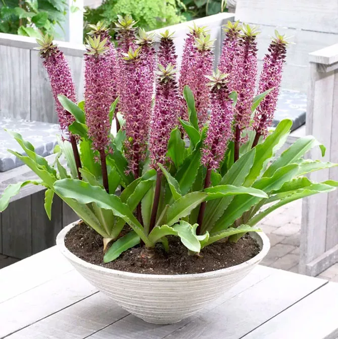 Еукоміс також можна вирощувати в контейнерах. Правила вирощування схожі на садові: