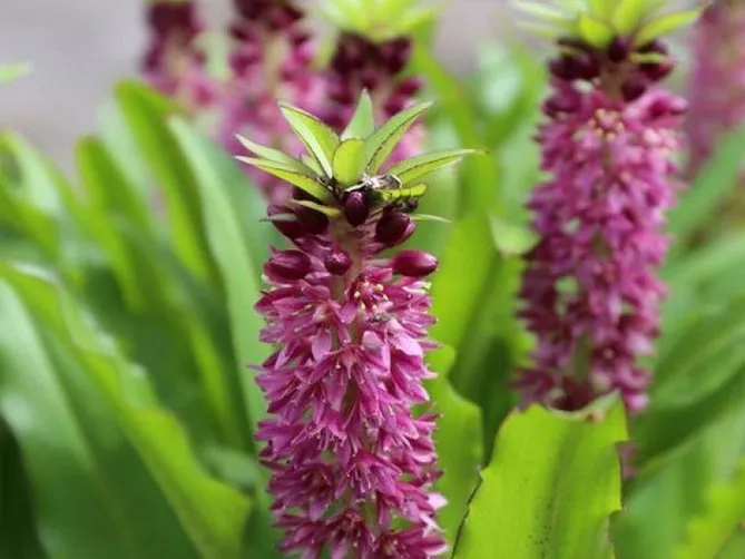 - Eucomis bicolor Baker – Евкоміс двоколірний;