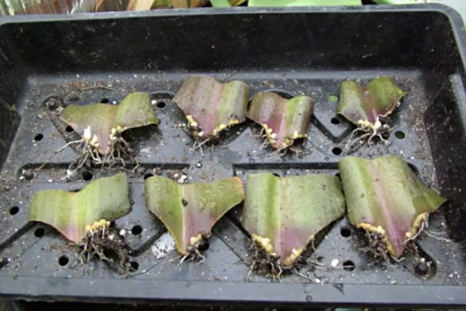 Перед початком розмноження еукоміса листовими живцями потрібно за 2 дні заздалегідь провести профілактичне оприскування рослини фунгіцидом. Вранці рослину поливаємо. Через 2 години можна взяти листок на розсаду.