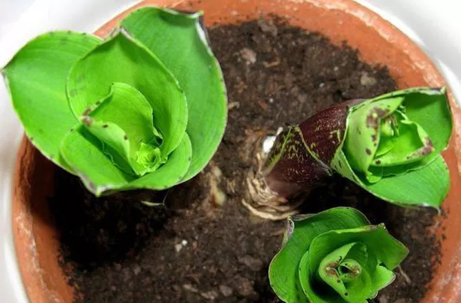- На початку квітня пересаджуємо цибулину в новий субстрат, відокремлюючи діточок і пересаджуючи їх в інші горщики.