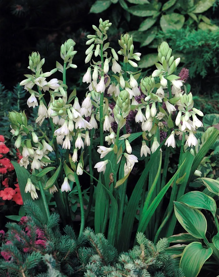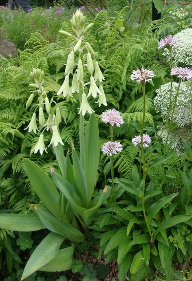 У саду можна поєднувати гальтонію з рослинами, які мають однакові потреби і квітнуть у той же час: