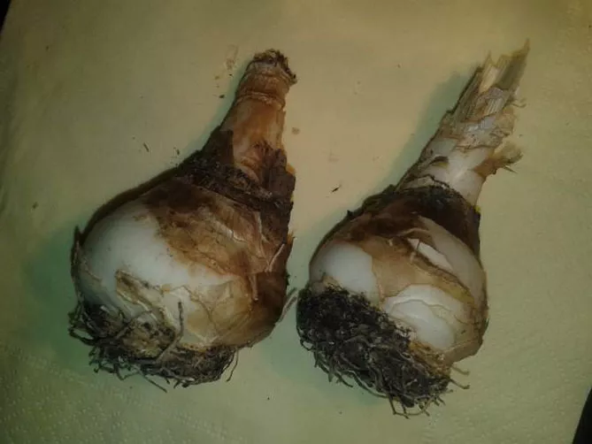 - Відокремте вручну цибулини-дітки, які розвинулися біля основи.