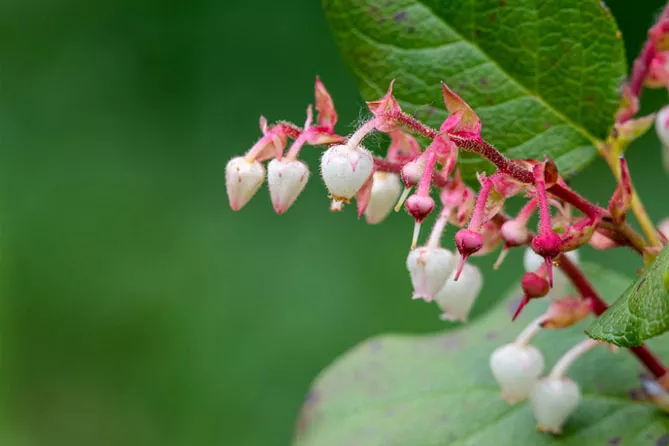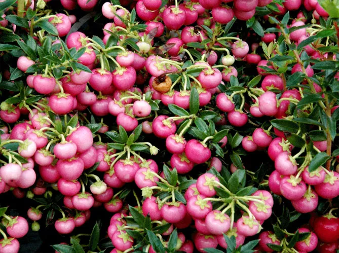 Пізньою весною гілочки рослини вкриваються дрібними рожево-білими квітами у формі дзвіночків. Рослини зазвичай дводомні, тому необхідно посадити поруч чоловічий екземпляр, щоб запилити жіночі, які дають ягоди.