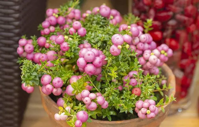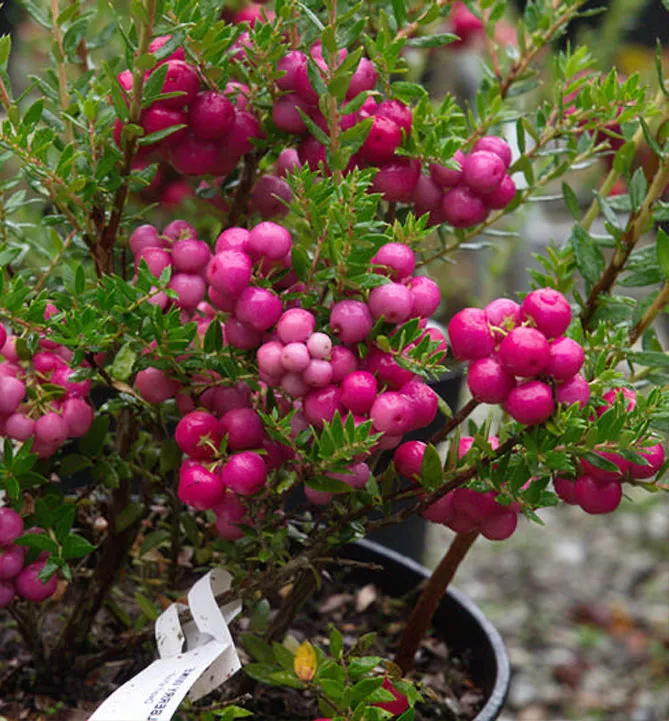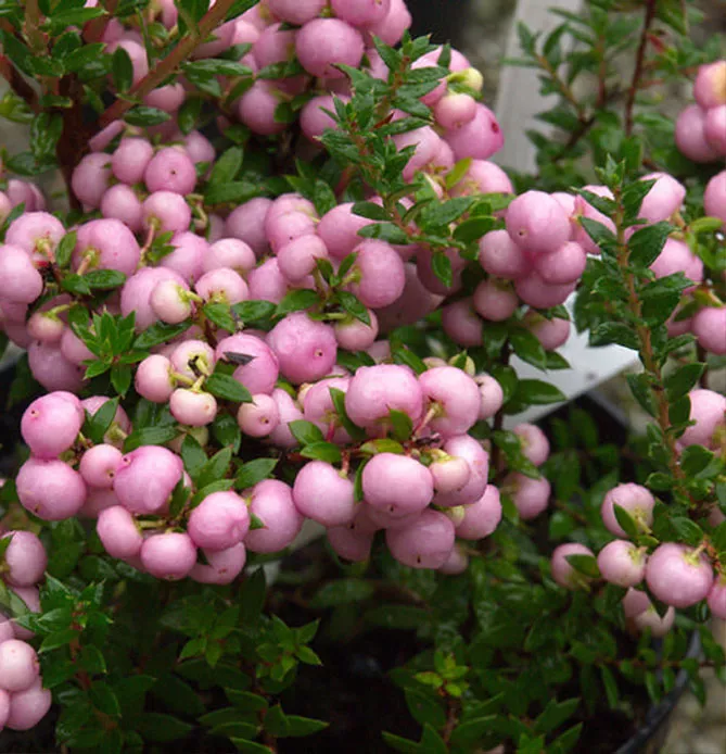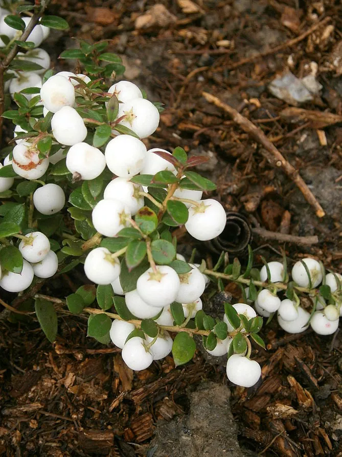 Головна привабливість гаультерії полягає у формуванні маленьких плодів – кістячок, схожих на перламутрові намистини, діаметром 1 см, що зберігаються до весни. Залежно від сорту, вони мають білий, рожевий або червоний колір з різними відтінками.