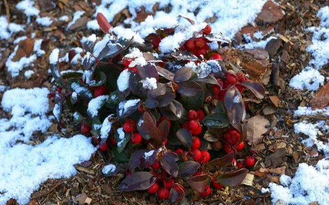 - Зимування. Гаультерія лежача досить морозостійка, тому не потребує зимового укриття, посуха для неї небезпечніша за холод. Інші види можуть бути менш морозостійкими, це потрібно враховувати, вкривати їх на зиму. Рослини у горщиках обов’язково потрібно заносити на зиму у прохолодне, світле приміщення, оскільки ґрунт у горщиках взимку сильно промерзає.