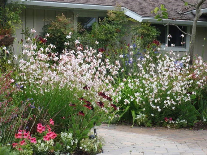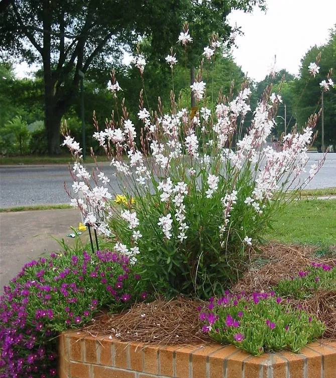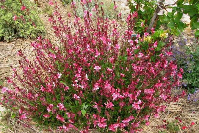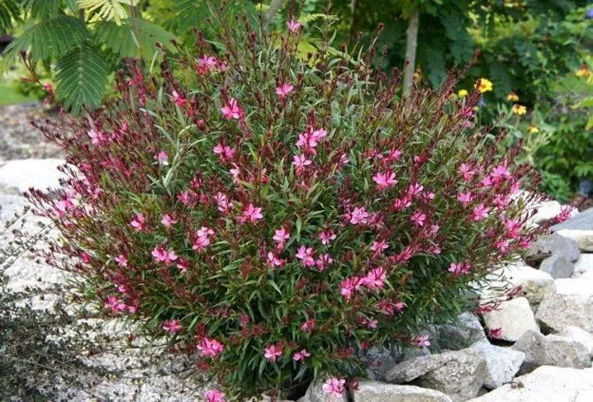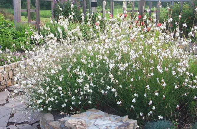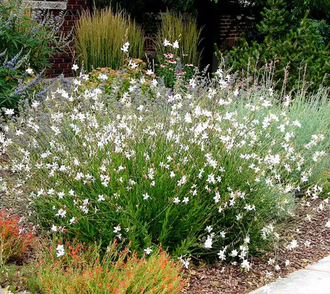 Плавне цвітіння гаури нагадує поля польових квітів. Тому варто поєднувати її з іншими рослинами заміського типу: