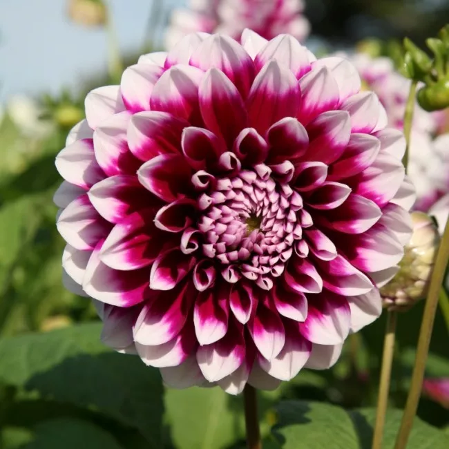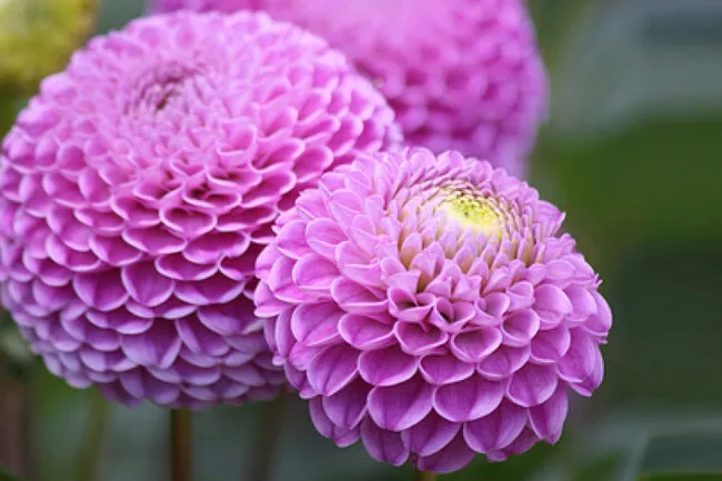 Ефектно виглядають георгіни гіганти зі сферичними, досить великими, трохи сплющеними або кулястими квітами, повністю заповненими вигнутими пелюстками язика, наприклад, «Nivea».