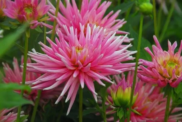 На додаток до високих і середніх георгін також популярні карликові сорти. Тому ці дивовижні квіти ділять на кілька груп, полегшуючи їх класифікацію, ідентифікацію.