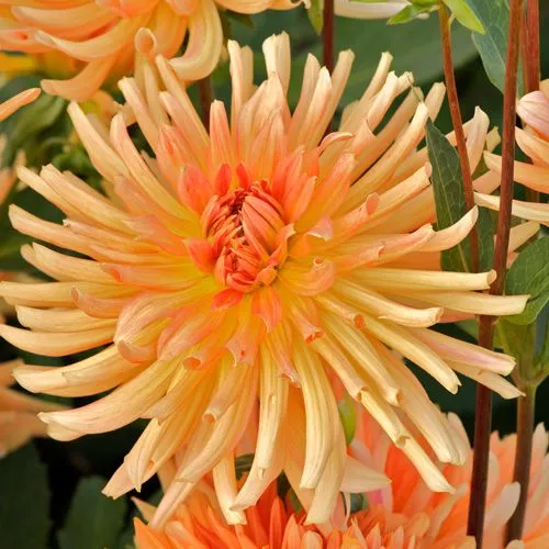 Не менш привабливі георгіни напівкактусові та кактусові, квітки яких мають пелюстки з загнутими та загостреними кінцями, наприклад: