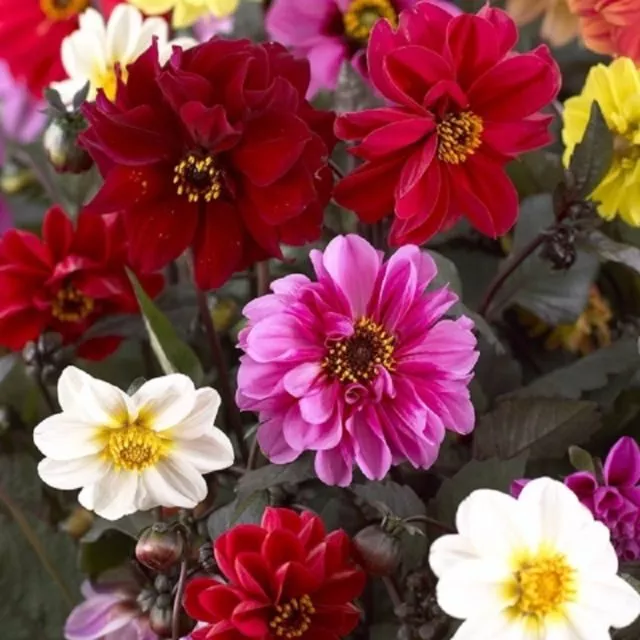 Як і в інших груп, серед георгінів зустрічаються різновиди всіх кольорів, крім синього, в якому ці чудові рослини не розцвітають. Можна вибирати серед: