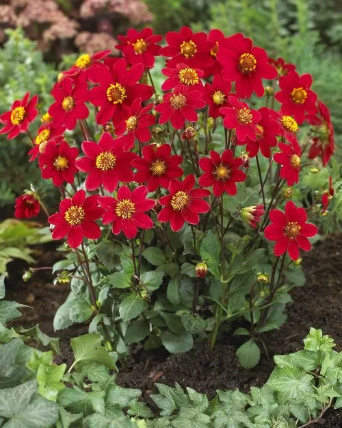 Серед карликових георгінів з одиночними квітками слід згадати дуже низькі сорти, що пропонуються у вигляді насіння: