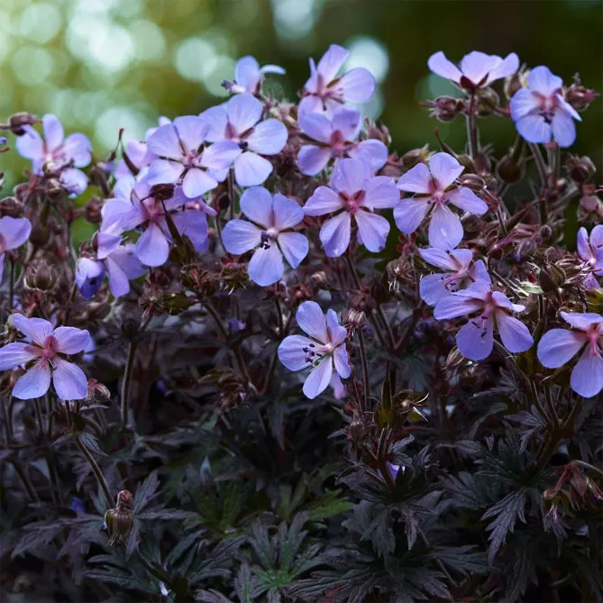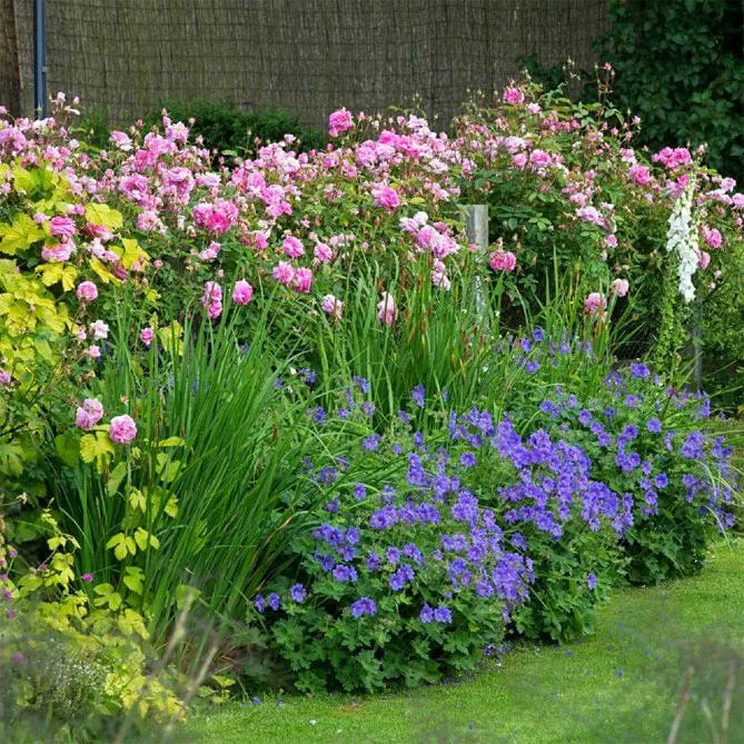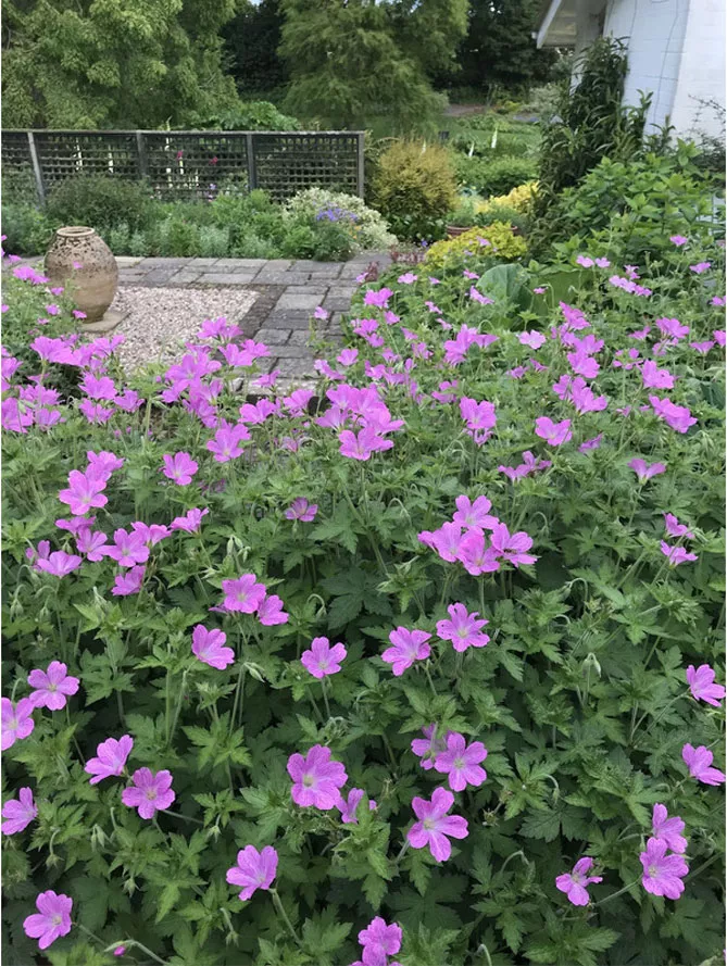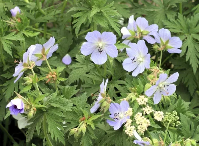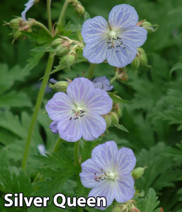 - не втрачають колір – Geranium pratense сорт «Сільвер квін» Silver Queen, Geranium himalayense сорт «Айріш блю» Irish Blue.