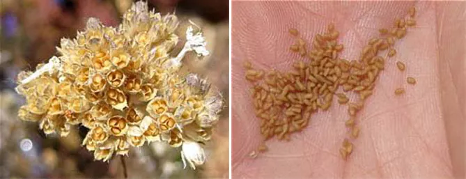 - Плід містить безліч дрібних, подовгастих, світло-коричневих насінин.