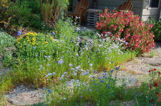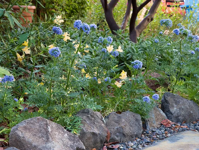 Гілія медоносна, корисна для біорізноманіття, приваблює безліч комах-запилювачів (метелики, бджоли).