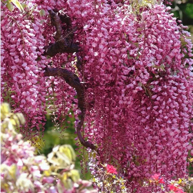 Рясноцвітуча або японська гліцинія (Wisteria floribunda) завдяки чудовим, ароматним квітам також називається квітковою. Ця багаторічна ліана характеризується досить високою стійкістю до холоду. У нашій країні вона не з’являється у дикій природі, але успішно вирощується садівниками, які забезпечують адекватні умови вирощування. В Японії вістерія росте на дорогах у дикому вигляді і виглядає як чудовий бур’ян.