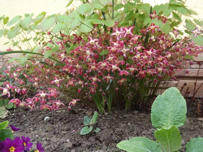 - Горянку можна садити в компанії з іншими багаторічними рослинами, наприклад: