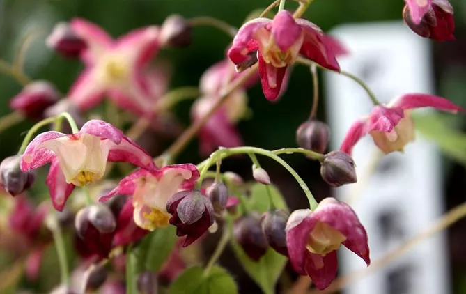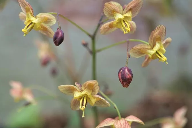 Епімедіуми дійсно оригінально квітують – квітки невеликі, зібрані у суцвіття, іноді вони виглядають як маленькі капелюшки ельфів.