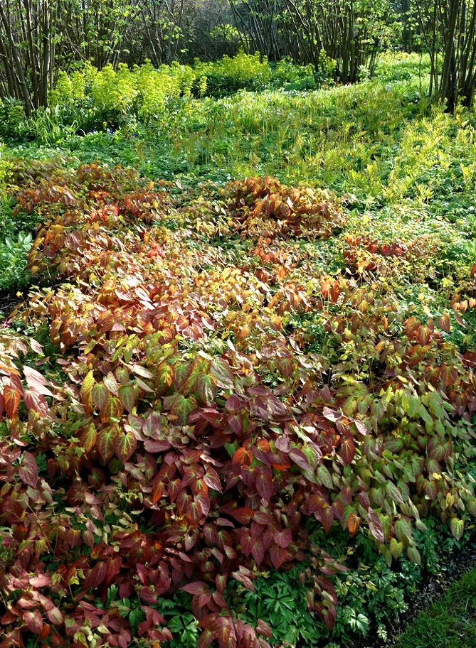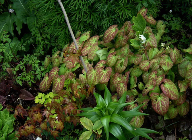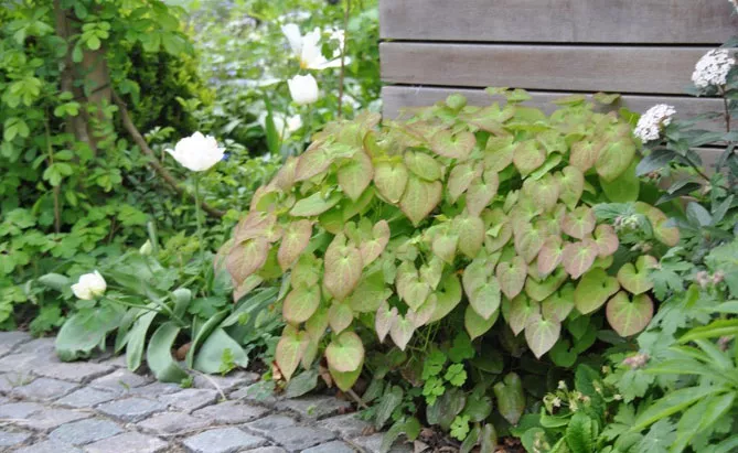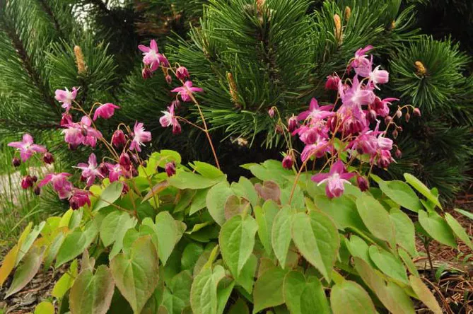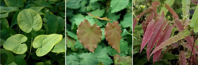 Поєднуйте епімедіуми з іншою декоративною та барвистою листкою та додайте кілька рослин, листя яких набуває яскравих відтінків навесні або восени. Із кущів, можна обрати: