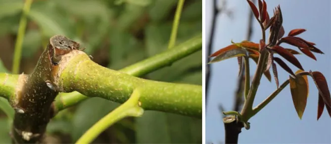 - Навесні заражені пагони не випускають листя або листя раптово засихає.