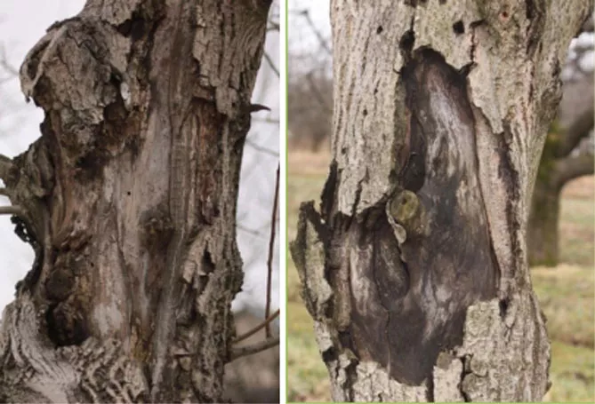 - На місці інфекції утворюються тріщини, що загоюються в наступні сезони.