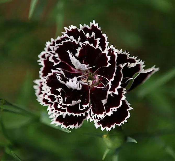 - Dianthus chinensis var. giganteus – висотою 40-60 см, з 2-3 оксамитовими квітками темно-фіолетового кольору, облямованими рожево-білою каймою.
