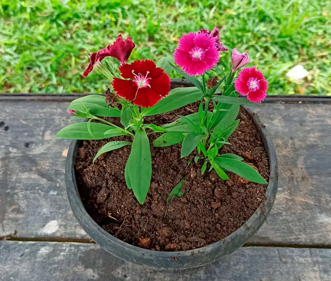 Щоб вирощувати гвоздику в горщику, переконайтеся, що вода циркулює і не застоюється, не забудьте покласти дренажний шар на дно горщика.