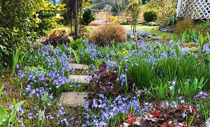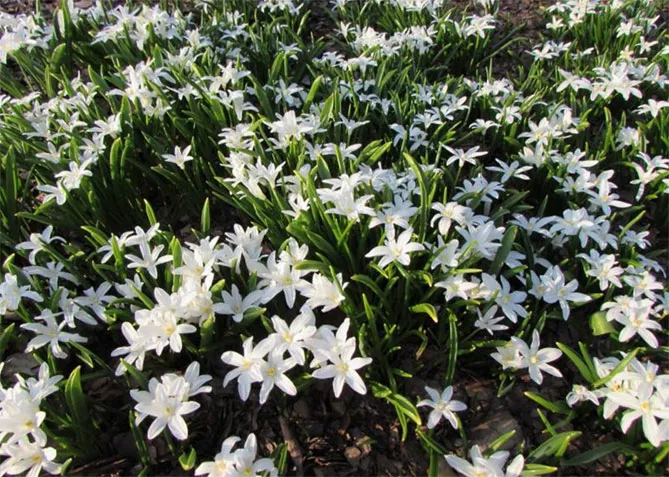 Хіонодокси чудово виглядають у саду, краще виглядають, коли їх посадили у велику групу: