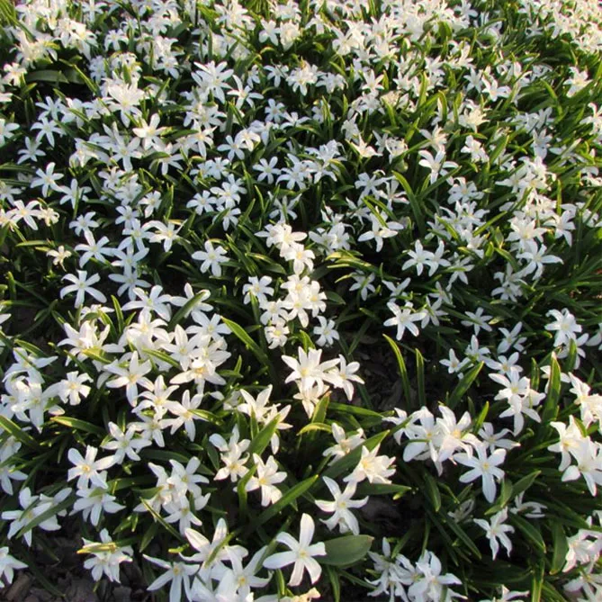 - Хіонодокса «Альба» Alba – популярний сорт з білими квітами.