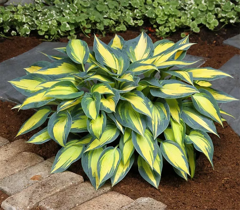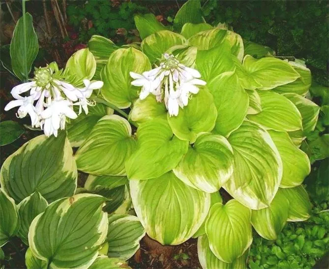Середні та високі хости зі строкатим листям можуть виступати чудовою ґрунтопокривною рослиною. Для правильного ефекту саджають 3-5 саджанців на 1 м². Можна створити гарну аранжування, комбінуючи густі посадки хости з папоротями, травами, астильбами.