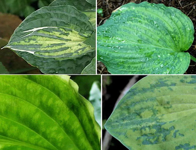 На картинках нижче представлені симптоми вірусу хости.