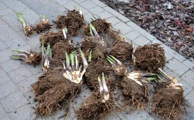 - Якщо поділ вимагає використання гострих інструментів, рани будуть «загоюватися» краще, тому що рослина тільки починає рости. Сира, холодна осінь, раптові морози утруднюють загоєння ран на кореневищі, іноді рослини починають гнити.