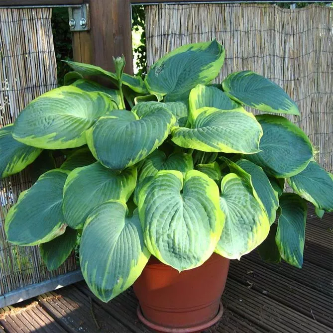 Серед сортів хости деякі після посадки в горщик чудово прикрасять балкон або терасу. Сорт «Медовий дзвіночок» Honey Bell підходить для сонячних балконів. Для власників затінених балконів рекомендований сорт Frances Williams із синьо-зеленим листям із жовтими краями.